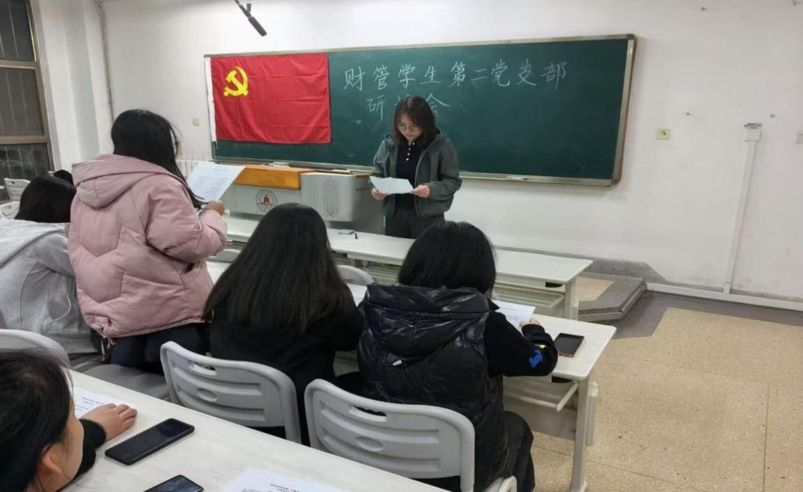 财管学生第二党支部书记郭一静老师带领全体学生系统梳理并深入学习贯彻习近平总书记关于党性的一系列重要论述精神。她强调,党性是立身、立业、立言、立德的基石,加强党性修养是终身课题。全体学生党员必须深刻认识新时代加强党性锻炼的极端重要性,自觉用党的创新理论武装头脑,不断筑牢信仰之基、补足精神之钙、把稳思想之舵,将强化党性意识内化于心、外化于行。