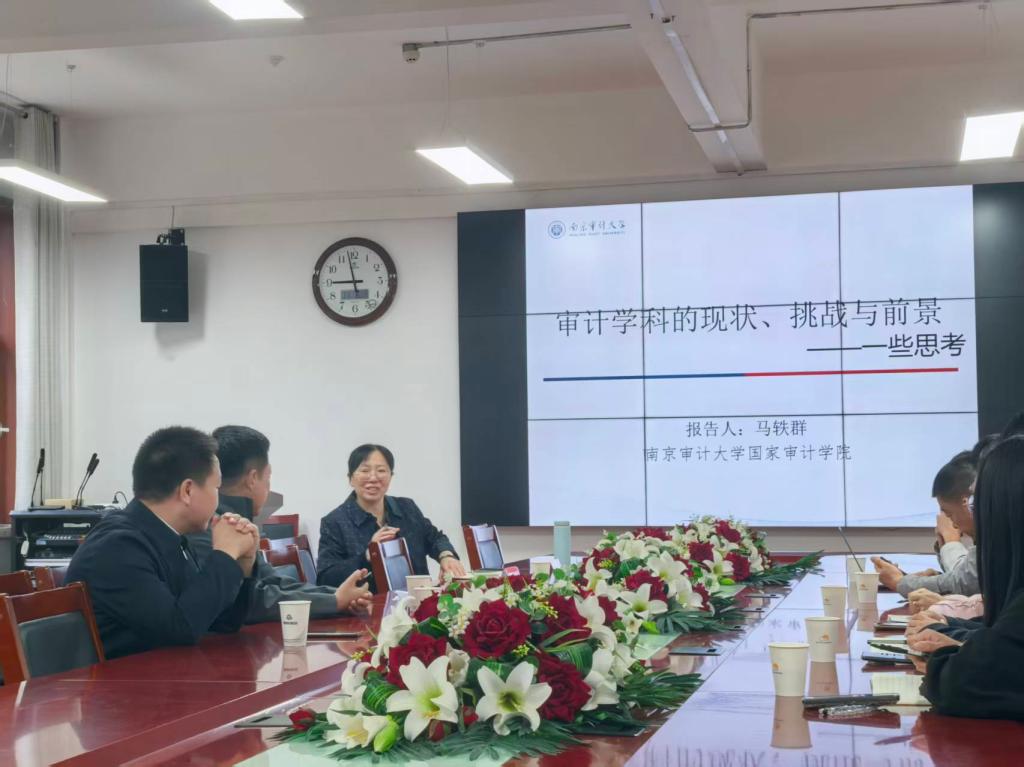 讲座中,马铁群教授以“审计学科的现状、挑战与前景”为核心主题,立足全国审计学科发展大局,系统梳理了当前学科在国家治理与行业需求双重驱动下的发展现状:一方面,高校审计学科布局持续完善;另一方面,审计人才培养与市场需求已实现初步适配。同时,他明确指出,数字经济催生的智能审计浪潮、国家对审计监督体系建设的高度重视,正为学科发展带来关键机遇。