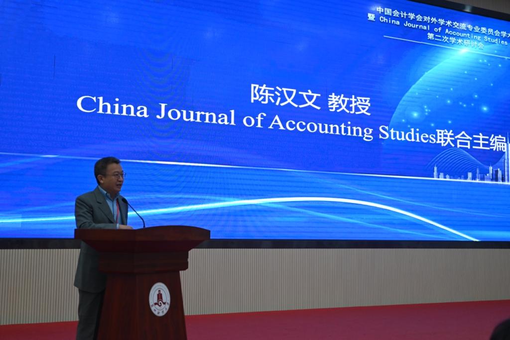 CJAS联合主编陈汉文教授致辞。首先,他介绍了CJAS的基本情况与投稿数据,CJAS作为中国会计学会官方主办的英文期刊,创刊12年以来,在传播中国会计学术方面的作用发挥日趋显著。2025年CJAS已收到稿件269篇,其中新投稿件209篇、修回稿件60篇。209篇新投稿件中来自国外40个国家的稿件共134篇,占比64.1%,较去年同期增长15.7个百分点,反映出CJAS的国际影响力不断提升。随后详细介绍了CJAS的审稿周期、选稿要求、研究主题等,最后他通过比较中美资本市场的差异,强调未来CJAS将持续支持立足中国特色情境、回应中国发展实践的多元化、高质量研究,打造具有中国特色和国际知名的会计学术期刊。
