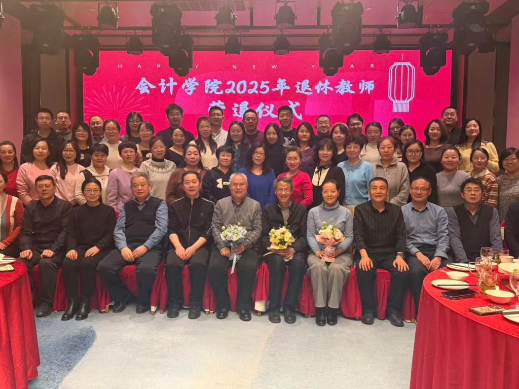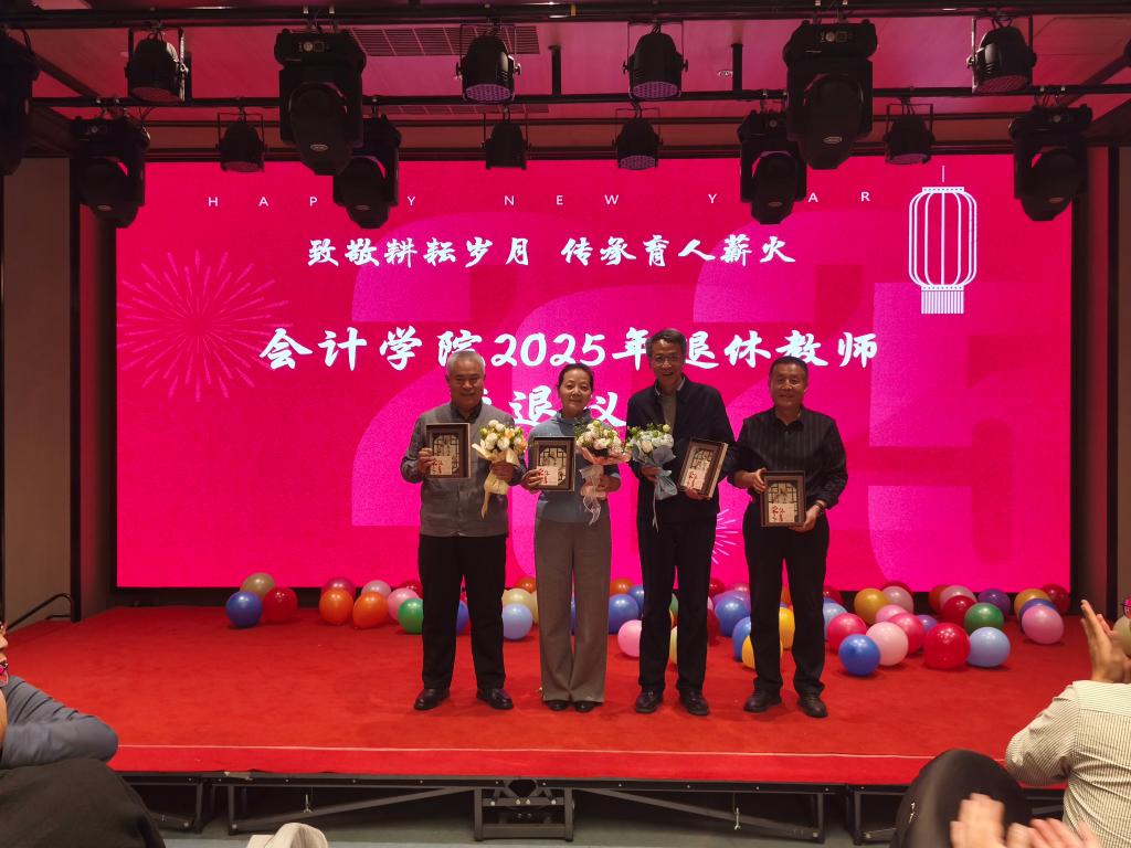 仪式在温馨欢乐的氛围中圆满落幕。此次活动不仅为退休教师送上了专属的荣光与祝福,更搭建了教职工交流互动的温馨桥梁,有效激发了全体人员的归属感与奋斗热情。新的一年,会计学院全体教职工将以此次活动为契机,赓续传承、奋楫争先,以更饱满的热情、更务实的作风,携手推动学院各项事业再谱新篇、再创辉煌!